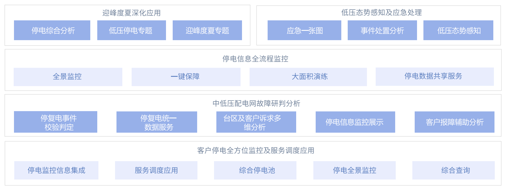 基于統一電網模型,匯集生產、營銷、客服、調度等系統數據,解決配網停電全過程的監控和分析要求, 滿足服務調度對停電監控的日常工作要求,以客戶為中心,實現停電實時監控、歷史停電記錄查看、停 電指標統計、熱點停電地區分析、停電通影響范圍統計,完善提高客戶服務質量、提升客戶滿意度,實 現配網停電管控從“信息化專業支撐”走向“數字化業務賦能”,推動企業的高質量發展。