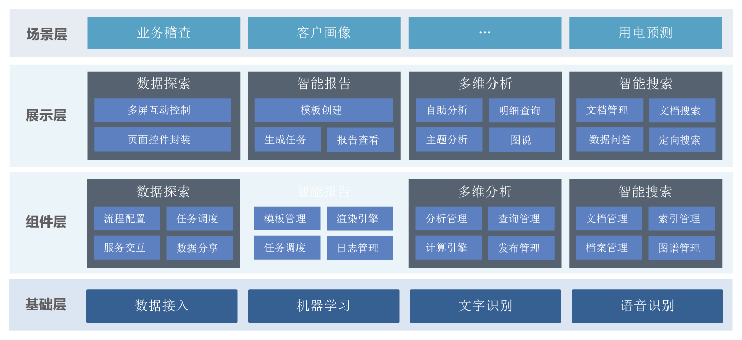 輔助數據分析人員針對各類業務數據快速開展數據分布特征、數據質量與數據內在規律與趨勢自助分析,通過將基于分布式計算引擎的機器學習算法、通用的數理統計公式以技術組件的形式進行固化,降低機器學習算法應用門檻。以向導式配置的模式,實現從數據接入、數據探索、模型構建、訓練與發布的流程化管理。